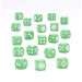 This is a set of 20 six-sided dice with rounded edges for use in games of Warhammer: The Old World, themed around the Armies of Grand Cathay. They are cast in jade green acrylic plastic with white ink pips and designs, and measure 16mm along each edge. On the standard D6s, the 1-5 facings are traditionally pipped, and each '6' face is decorated with the draconic icon of Grand Cathay.